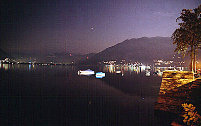 Uferpromenade von Locarno in der Dämmerung.