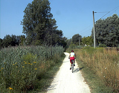 Der Radweg zwischen Markelfingen und Radolfzell führt zwischen Schilfgebieten und der Eisenbahnlinie auf die alte Stadt Radolfzell zu. Der Oberflächenbelag des Radweges besteht aus Mineralbeton und ist gewalzt.