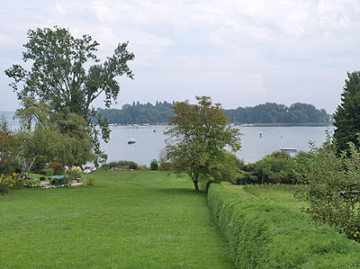 Vom etwas höher liegenden Radweg sieht man gut auf die Insel Mainau, der Ausblick ersetzt aber keinesfalls einen Besuch.