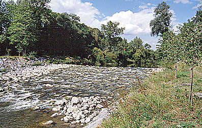 Immer wieder regulieren künstlich angelegte Wassertreppen die Strömungsgeschwindigkeit der Argen.