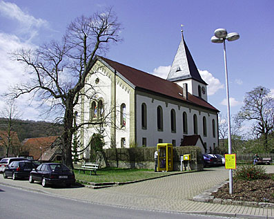 Recht gross für den kleinen Ort ist die Kirche in Hohebach. Vom Kirchplatz bietet sich ein beeindruckendes Bild auf die Steinbrücke über die Jagst.