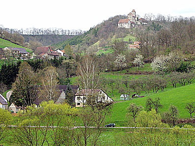 vom Tal aus residiert das Schloss Tierberg über dem Kochertal.