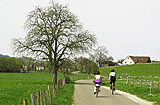 Route: An den Sportplätzen vorbei kündigt sich das uralte Ellwangen schon mit der Skyline der Wallfahrtskirche Schönenberg, dem Schloss, der romanischen Basilika Sankt Vitusund vielen anderen Kirchen an. |