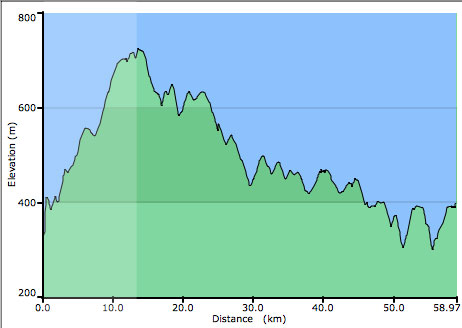Höhendiagramm: Summe Höhenmeter: 1112 Hm
