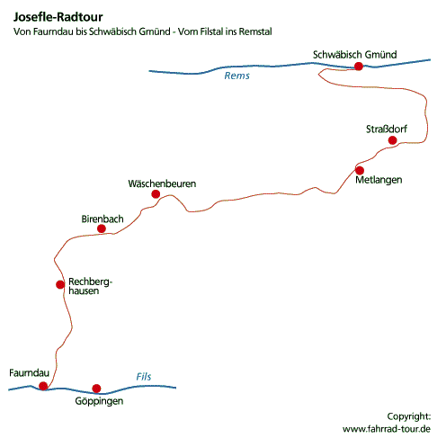 Route: Der Radweg folgt der "Stuttgarter Straße" und zweigt dann gut beschildert auf die "Lehlestraße" ab. Sie radeln dann durch den Stadtteil "Faurndau".