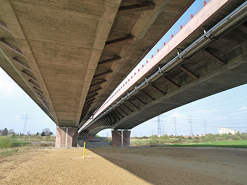 Bald unterqueren Sie die weit gestreckte Brücke der A6, die hier auf vielen Pfeilern das breite Neckartal überquert.