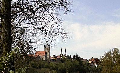 Die Reste, der einst größten staufischen Pfalz, allem voran der Blaue Turm sind schon weithin sichtbar.