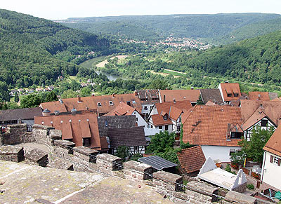 Schöner Ausblick auf das Neckartal: Von der Festung Dilsberg haben Sie einen herrlichen Panoramablick auf das eingeschnittene Neckartal.