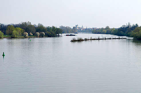 "Ilvesheim" liegt rechts des Neckars. Ein Großteil liegt auf einer Neckarinsel, die beim Bau des Neckarkanals um 1920 entstand.