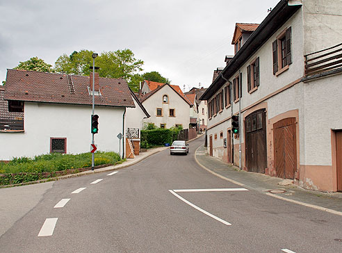In "Rainbach" erreicht der Radweg die wenig befahrene Straße K4200 und folgt ihr bis nach "Neckargemünd".