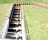 Info: Die Wehre und Schleusen mussten nach der "Rheinbegradigung" (im 19. Jahrhundert von Ingenieur Tülla) angelegt werden, um die Fließgeschwindigkeit des Rheines zu reduzieren. Probleme gibt es seitdem mit dem Lachsbesatz des Rheines. Seit kurzem wird in Gambsheim eine Fischtreppe gebaut, damit der Lachs weiter - irgendwann sogar wieder bis zum Bodensee wandern kann. Parallel zur Minderung der Fließgeschwindigkeit des Rheines entsteht durch die Staustufen auch Strom. Mehrere Generatoren nutzen die Kraft des fallenden Wassers und erzeugen über 100 MW Strom. Route: Sie überqueren den Rhein und erreichen auf der anderen Seite Freistett. Der Radweg führt unter der L87 in einer Schleife ins Industriegebiet von Freistett. |