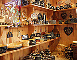 Ob dies nun Guglhupfformen, Baeckoffe-Pfannen und -Terrinen oder Steinzeugkrüge für Wein oder Cidre sind, vieles von den im Elsass angebotenen Waren hat seinen Ursprung in Soufflenheim. Schon in der ausgehenden Bronzezeit siedelten hier Töpfer. Die Funde sind in Hagenau im historischen Museum ausgestellt. Es ist sogar nachgewiesen, dass die hiesigen Töpfer bereits 400 vor Christus mit Drehscheiben arbeiteten. Bis heute ist die Handwerkskunst erhalten geblieben, hat sich aber auf ein gutes Dutzend sehr gut ausgestatteter Betriebe reduziert. Jeder hat seinen eigenen Stil und man langweilt sich nicht, von einem Betrieb zum anderen zu schlendern und die kostbaren Stücke zu besichtigen. Der eine Töpfer hat sich auf braune Glasur spezialisiert, der andere auf blaue, malt der eine die Blüten aus sieben eckigen Blättern, stilisiert sie der andere aus sechs Punkten.