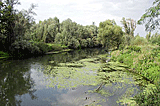 Auf einer Brücke überqueren Sie den Fluss Moder und erreichen dann eine offene, baumlose Strecke die in Richtung Roeschwoog führt.