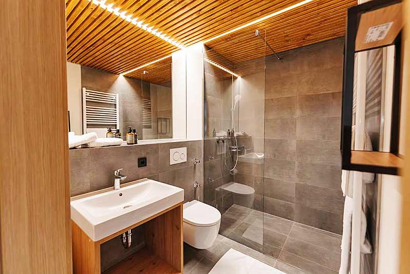 Jedes Apartment ist im modernen Stil ausgestattet und verfügt über mit Dusche/WC, Balkon od. Terrasse.