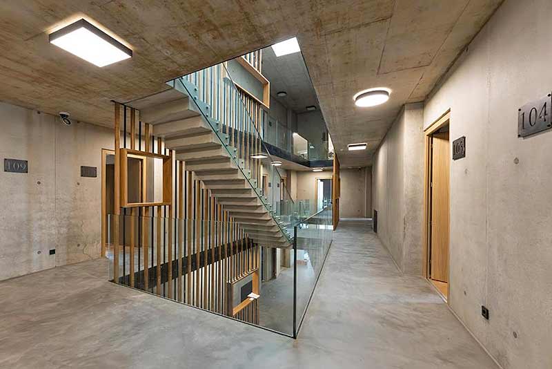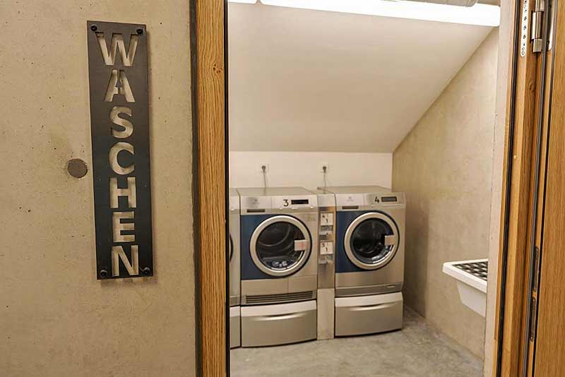 Wasch- und Trockenraum ist vorhanden. Die oberen Stockwerke sind auch mit Fahrstuhl erreichbar.