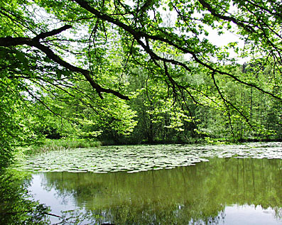 einen der romantischen Seen. Oft sind sie halb mit Seerosen zugewuchert.