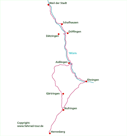 Kurzbeschreibung:Von der "Keplerstadt Weil der Stadt" führt diese Radtour entlang des Würmtales durch idyllische Täler in Richtung "Schönbuch".