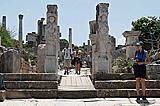 ![]() (Seitenanfang) Schneller als erwartet sind wir in Ephesos angekommen und uns bleibt noch etwas Zeit, bis die offizielle Reiseführerin ankommt. In der Türkei dürfen nur geprüfte Fremdenführer Gruppen durch antike Stätten leiten. Wir selbst stöbern bis zum Beginn der Führung in den Läden und finden natürlich sofort traditionelle Kleider für Heike und Regina.