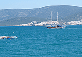 Gleich nach dem Frühstück um 9.00 Uhr geht es auf die Räder. Eine kernige Tour nach Iasos steht auf dem Programm. Auch Hassan, ein Besatzungsmitglied radelt heute mit. Wahrscheinlich hat ihn die gestrige Diashow mit dem Laptop inspiriert. Die wenigsten Einheimischen kennen ihr Land. Selbst der Kapitän ist unsere Fahrradstrecke noch nie gefahren. Die Tour führt zuerst auf einer asphaltierten Straße an der Küste entlang. Wir sehen, wie unsere "Flash VII" den Hafen wieder verlässt und parallel zu unserer Route fährt.